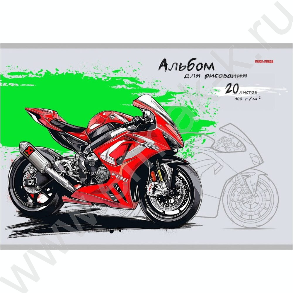 Альбом д/рисования 20л "Рисунок красного мотоцикла" лен