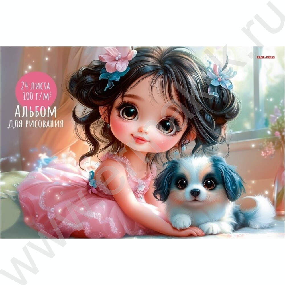 Альбом д/рисования 24л "Девочка и щенок-1" ассорти