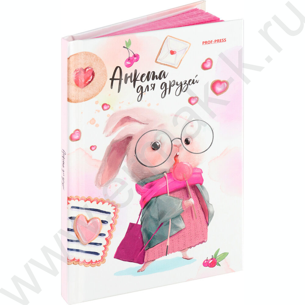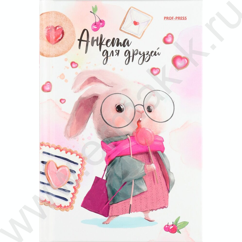 Анкета для друзей А6 64л "Зайка в очках"тв.обл./глянец/