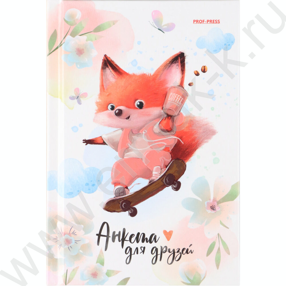 Анкета для друзей А6 64л "Лисёнок с кофе"тв.обл./глянец/