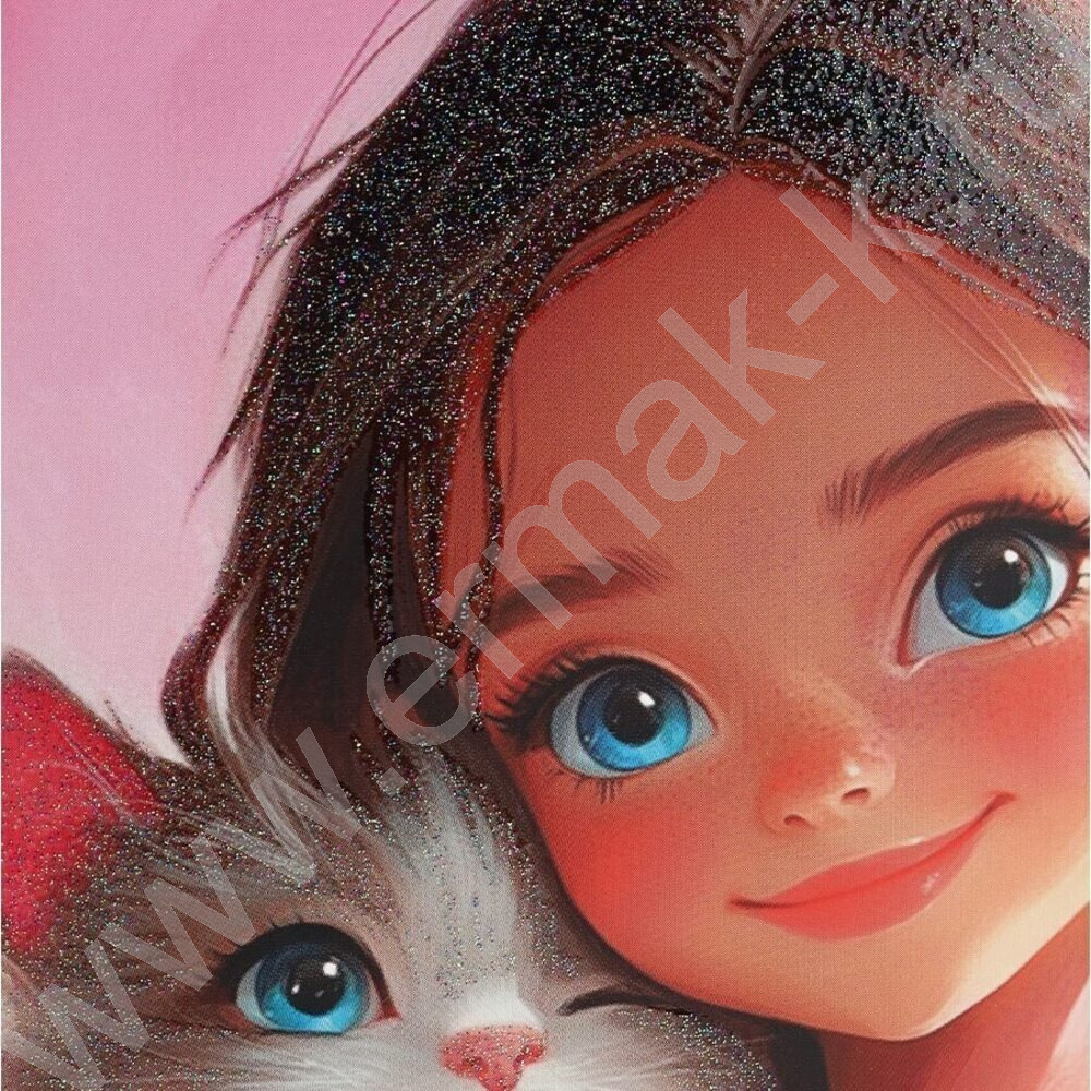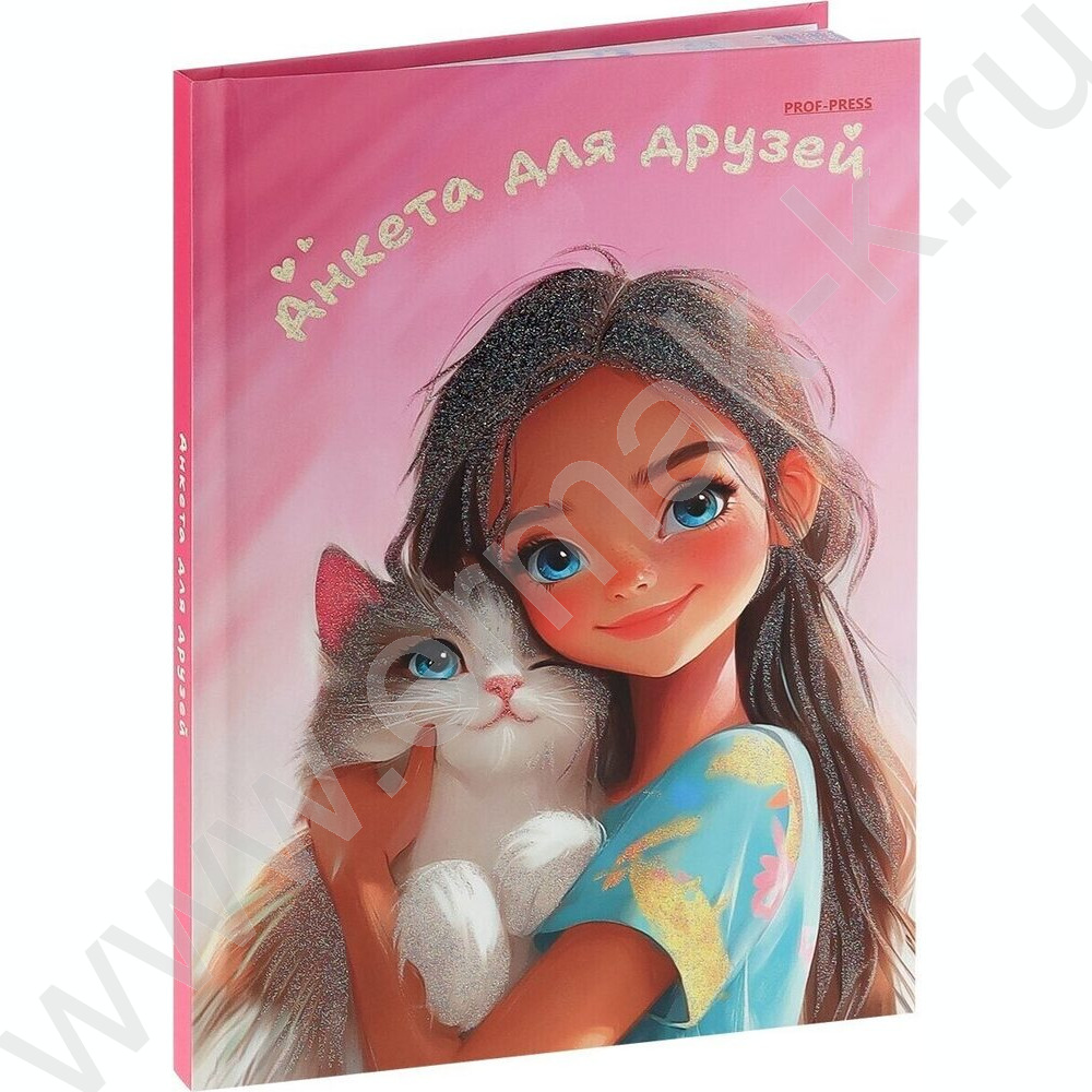 Анкета для друзей А5 112л "Девочка с котенком-1"тв.обл./глиттер/