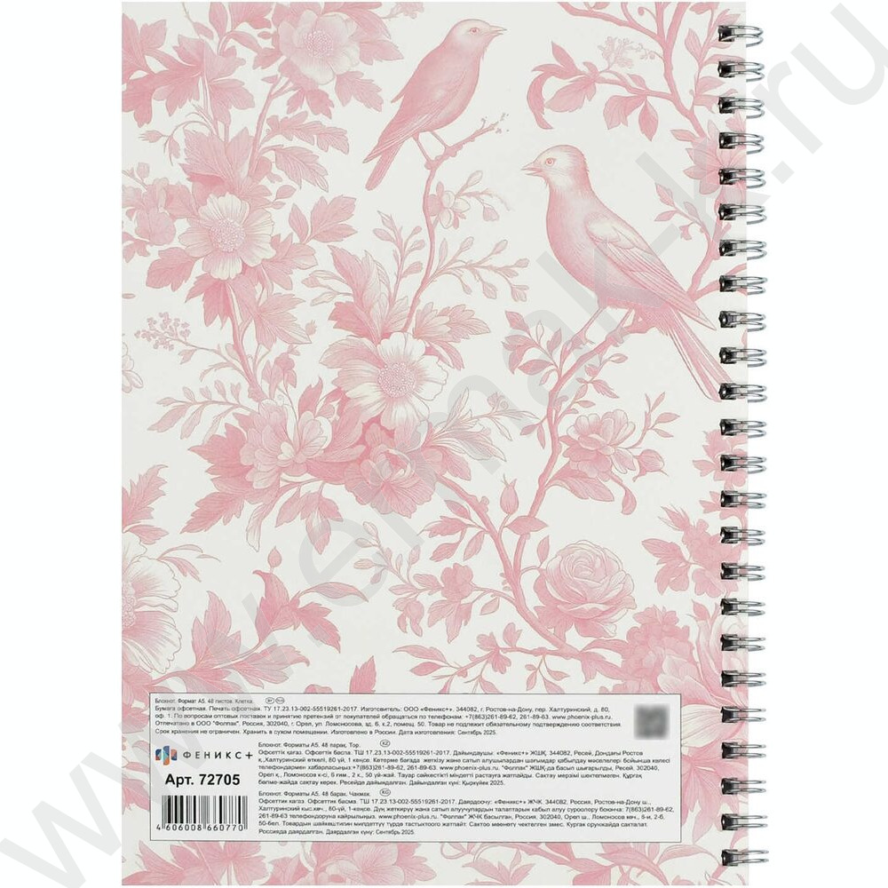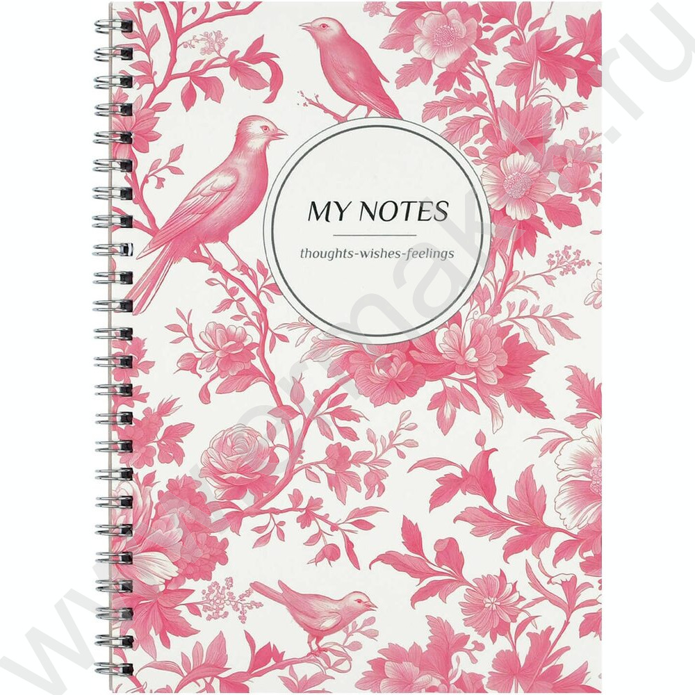 Блокнот 48л А5 спираль "Розовые птицы" клетка/мат.лам.