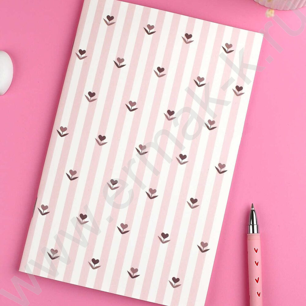 Блокнот 32л 120*185 "Цветочки-сердечки" /клетка, мат.лам., выб. УФ-лак, мягкий переплёт (2 скоб NEW