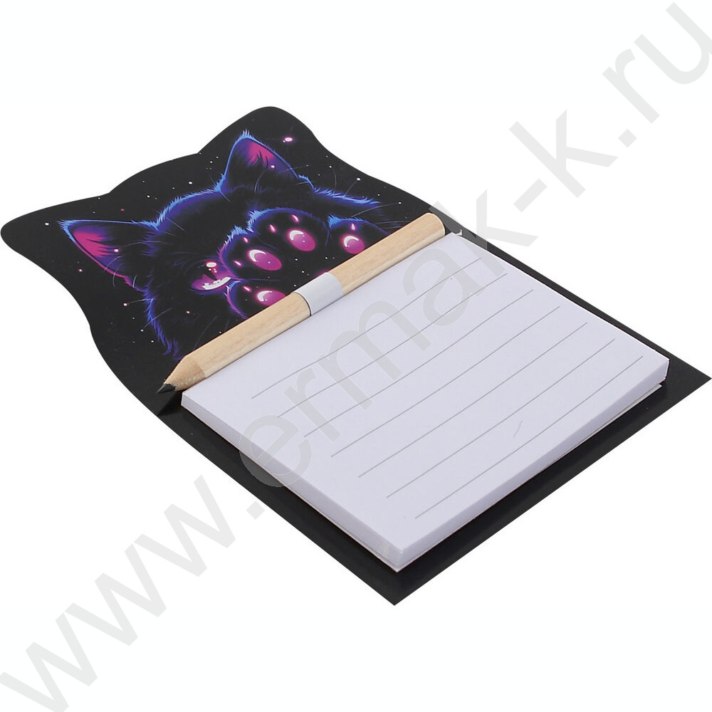 Блок д/записей с карандашом на магнитном креплении 14*10см 40л "Cosmo Cat" /проклеенный,линия