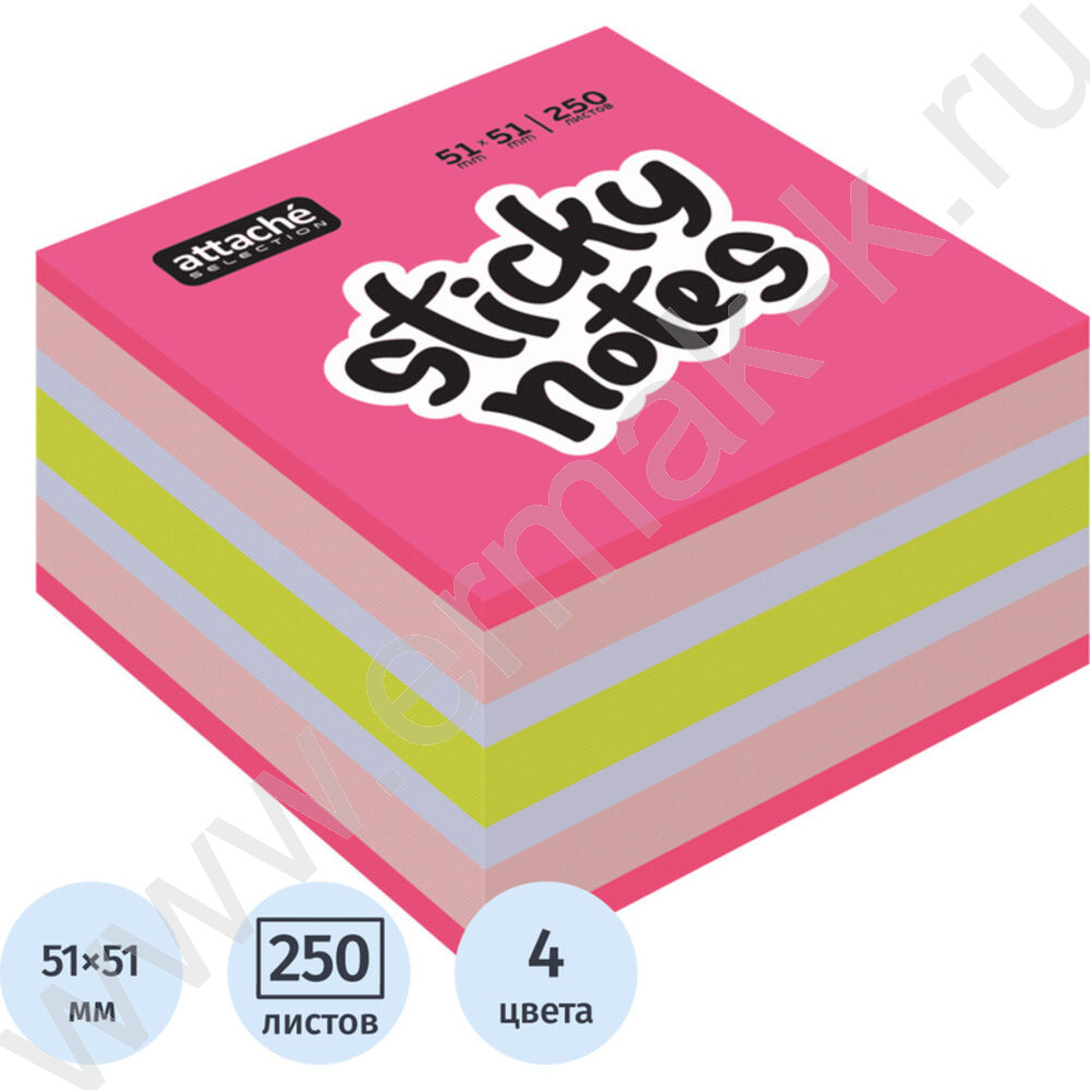 Бумага д/записей 51*51мм /250л Attache Selection клубничный микс с липким краем