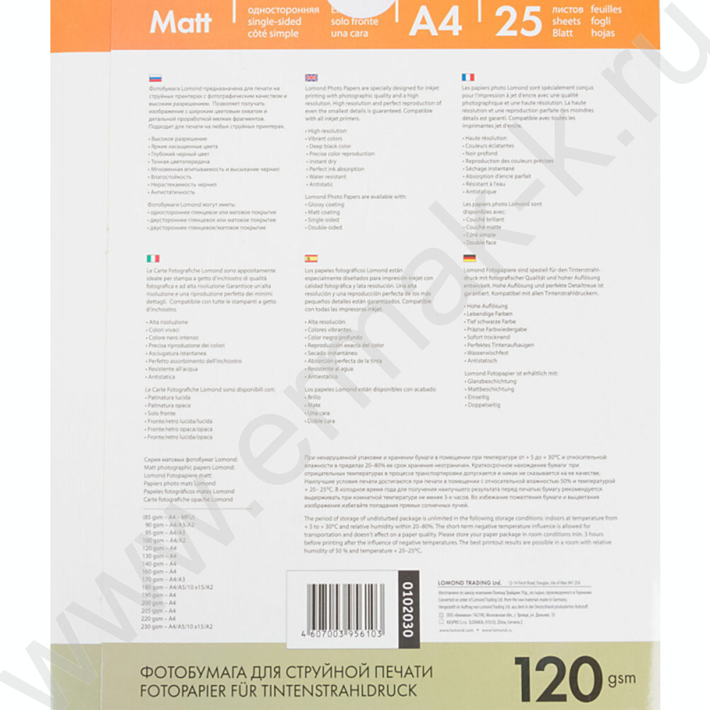 Бумага А4 "Lomond" 120г/мкв 25л матовая одностор.
