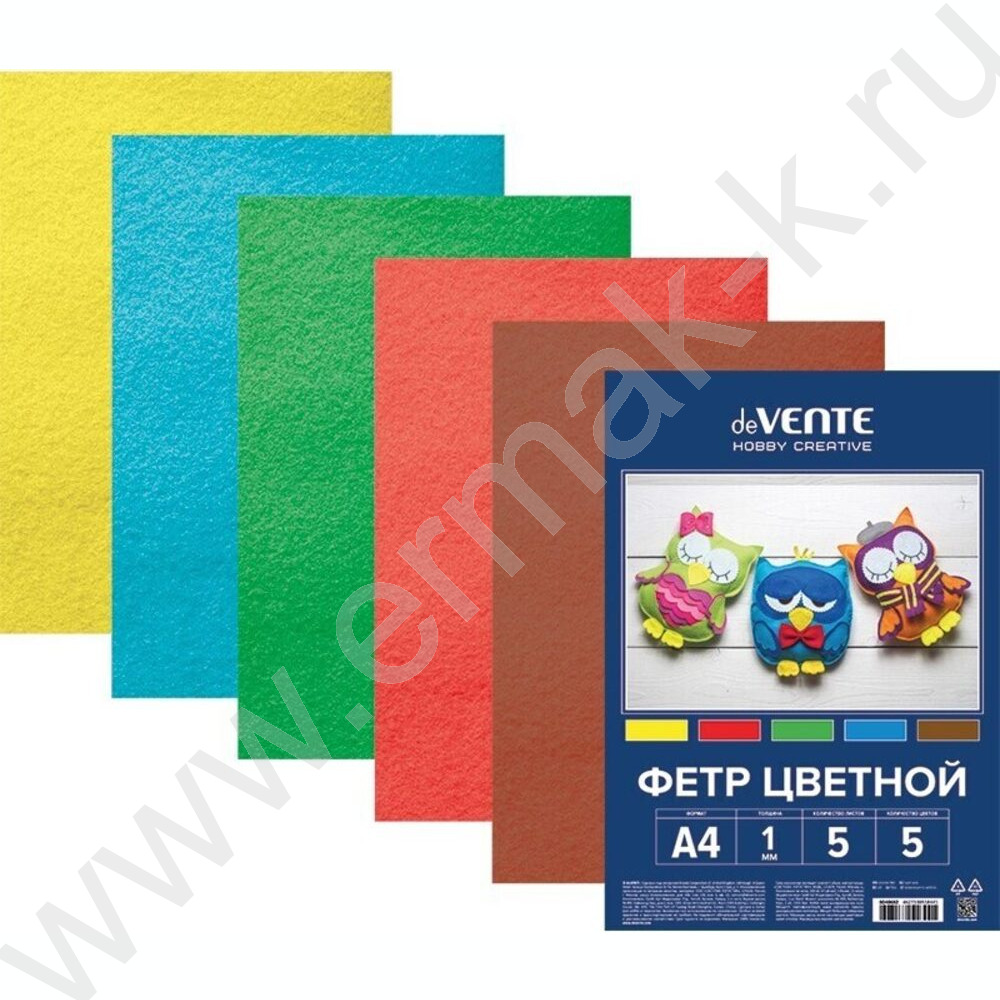 Фетр А4 Яркие цвета 1мм 5цв/5л /мягкий /пл.пакет с европодвесом