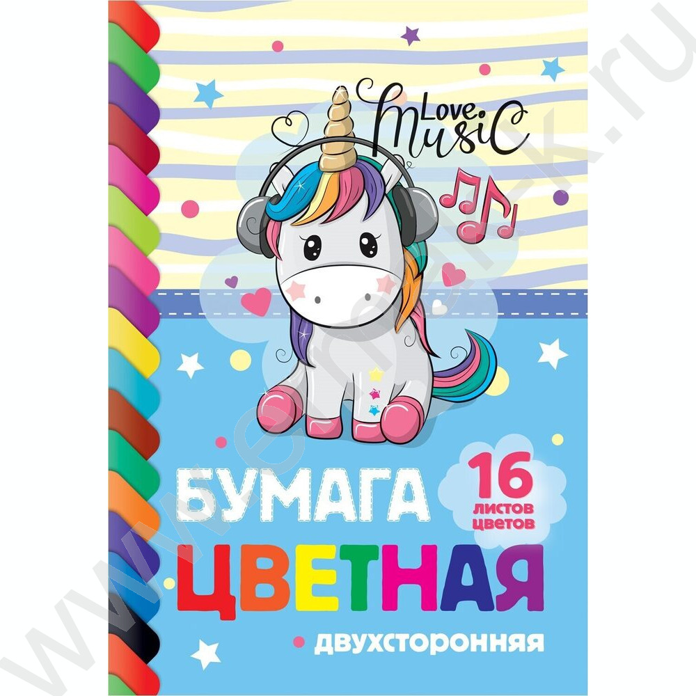 Бумага цв. двухсторонняя А4 16л/16цв I Love Music