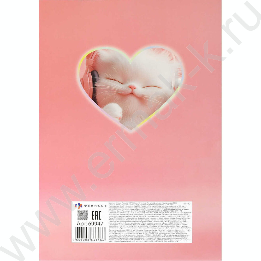 Бумага цв. двухсторонняя газетная А4 16л/ 8цв Котенок меломан