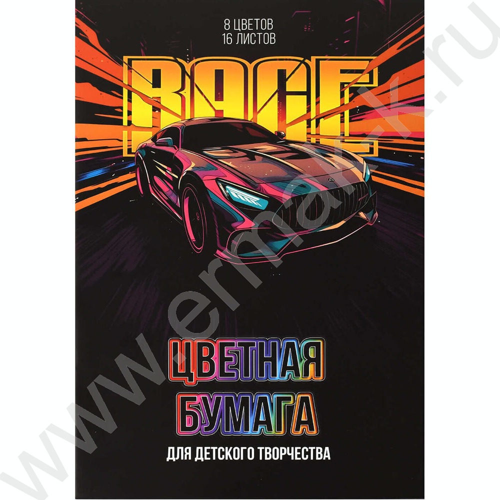 Бумага цв. двухсторонняя газетная А4 16л/ 8цв Гонка