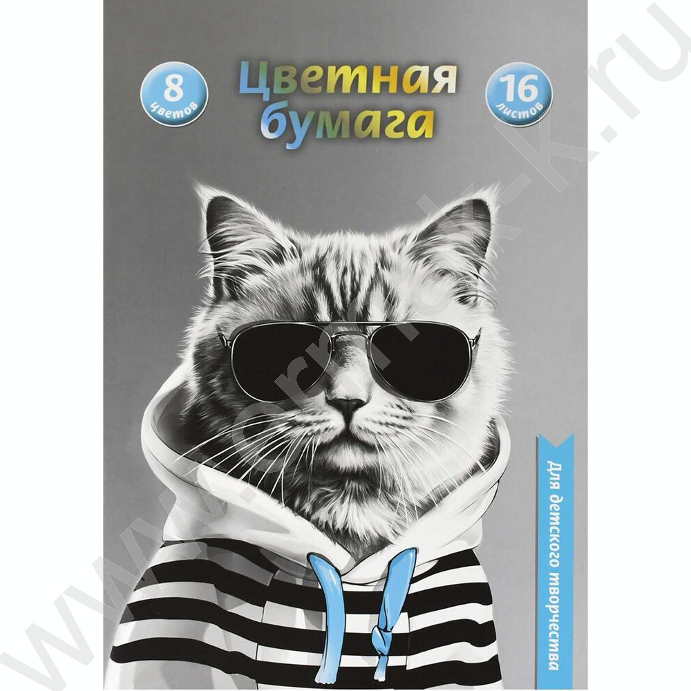 Бумага цв. двухсторонняя газетная А4 16л/ 8цв Кот в худи
