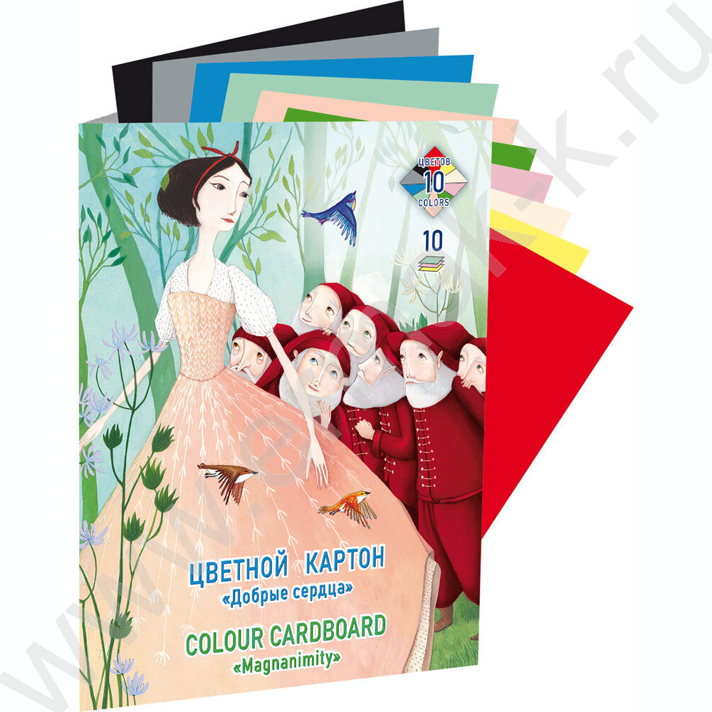 Картон цв. А2 10л/10цв Добрые сердца тонированный в массе 160г/м2