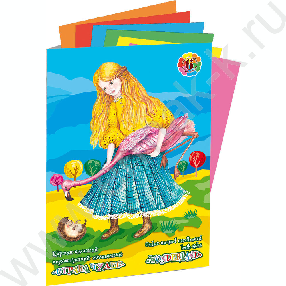 Картон цв. Двухсторонний мелов. А3 6л/6цв Страна чудес.Фламинго
