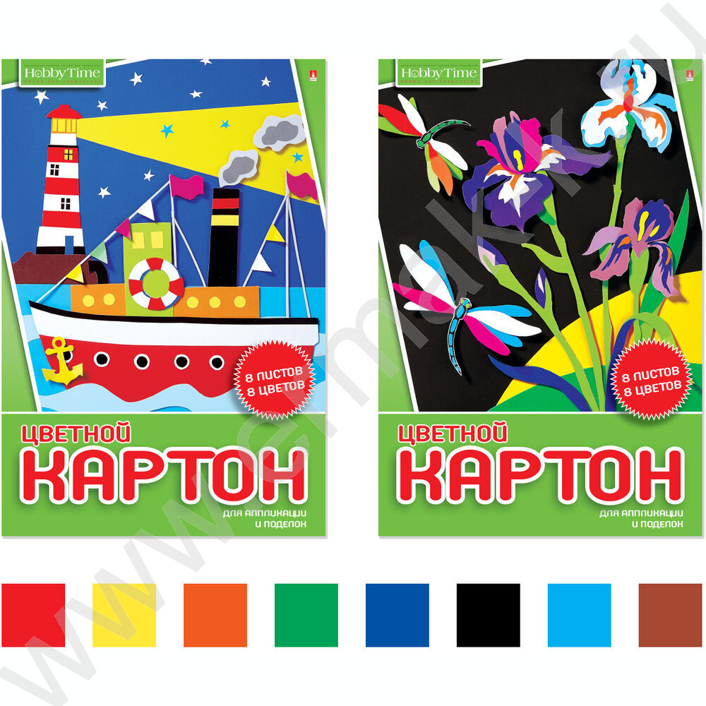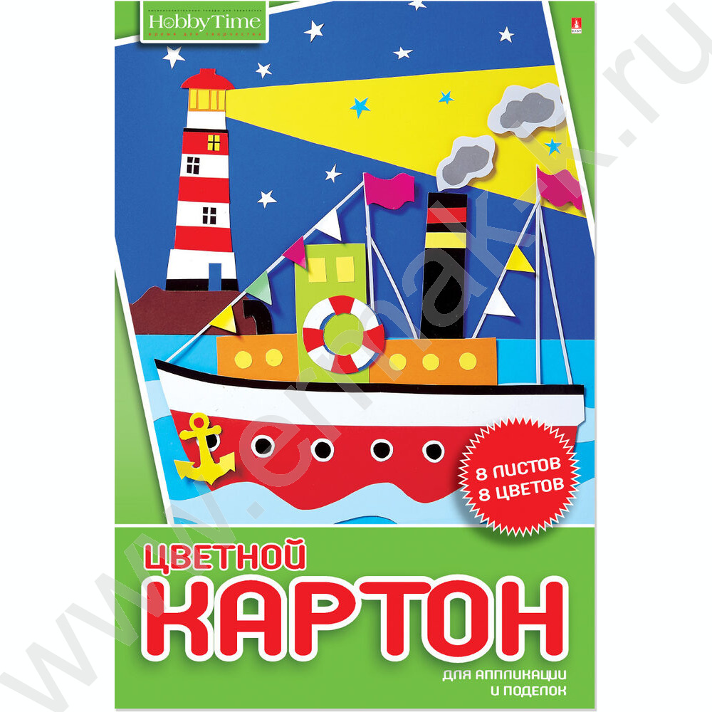 Картон цв. А4 8л/8цв Хобби тайм