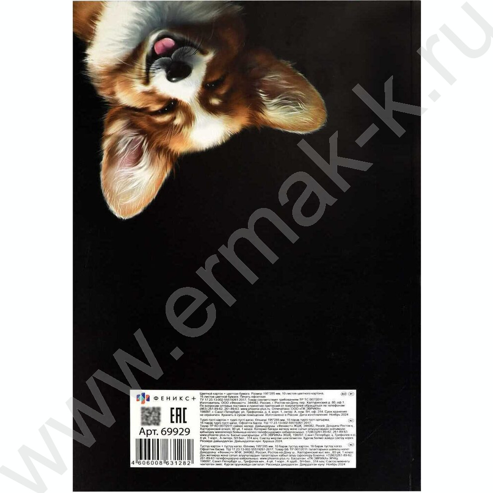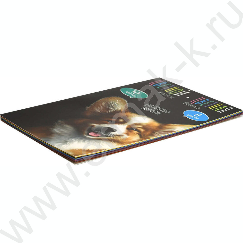 Картон цв+бум.цв А4 26л 10цв/ 8цв "Весёлый корги" блок - газетная бумага, мелованный картон с