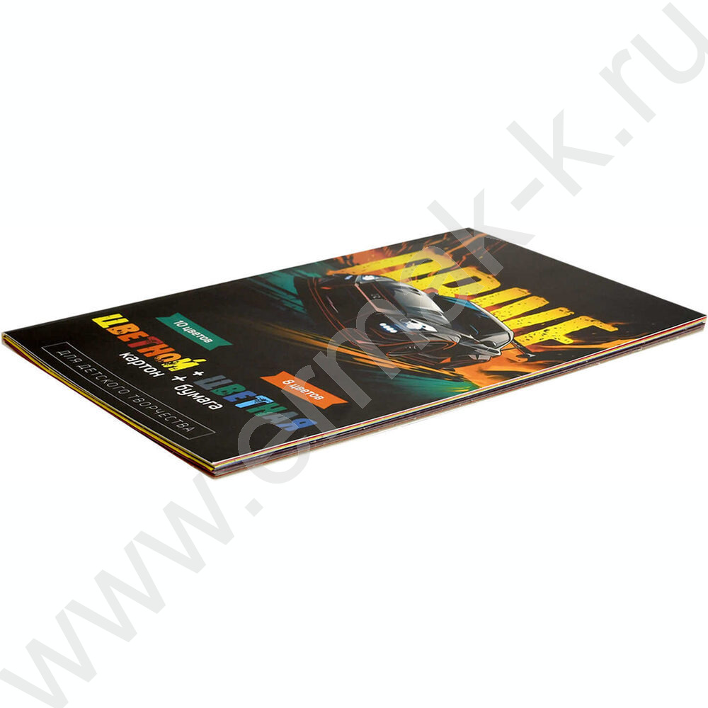 Картон цв+бум.цв А4 26л 10цв/ 8цв "Драйв" блок - газетная бумага, мелованный картон с