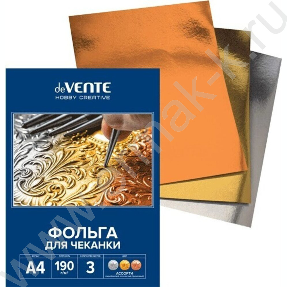 Фольга для чеканки A4 190 г/м², 3л(серебристая, золотистая, бронзовая)