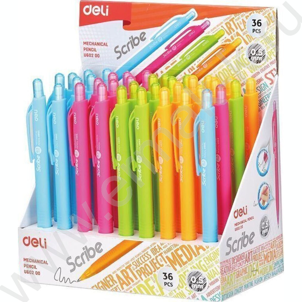 Карандаш механический 0,5мм SCRIBE /резиновый держатель, пласт. корпус - ассорти