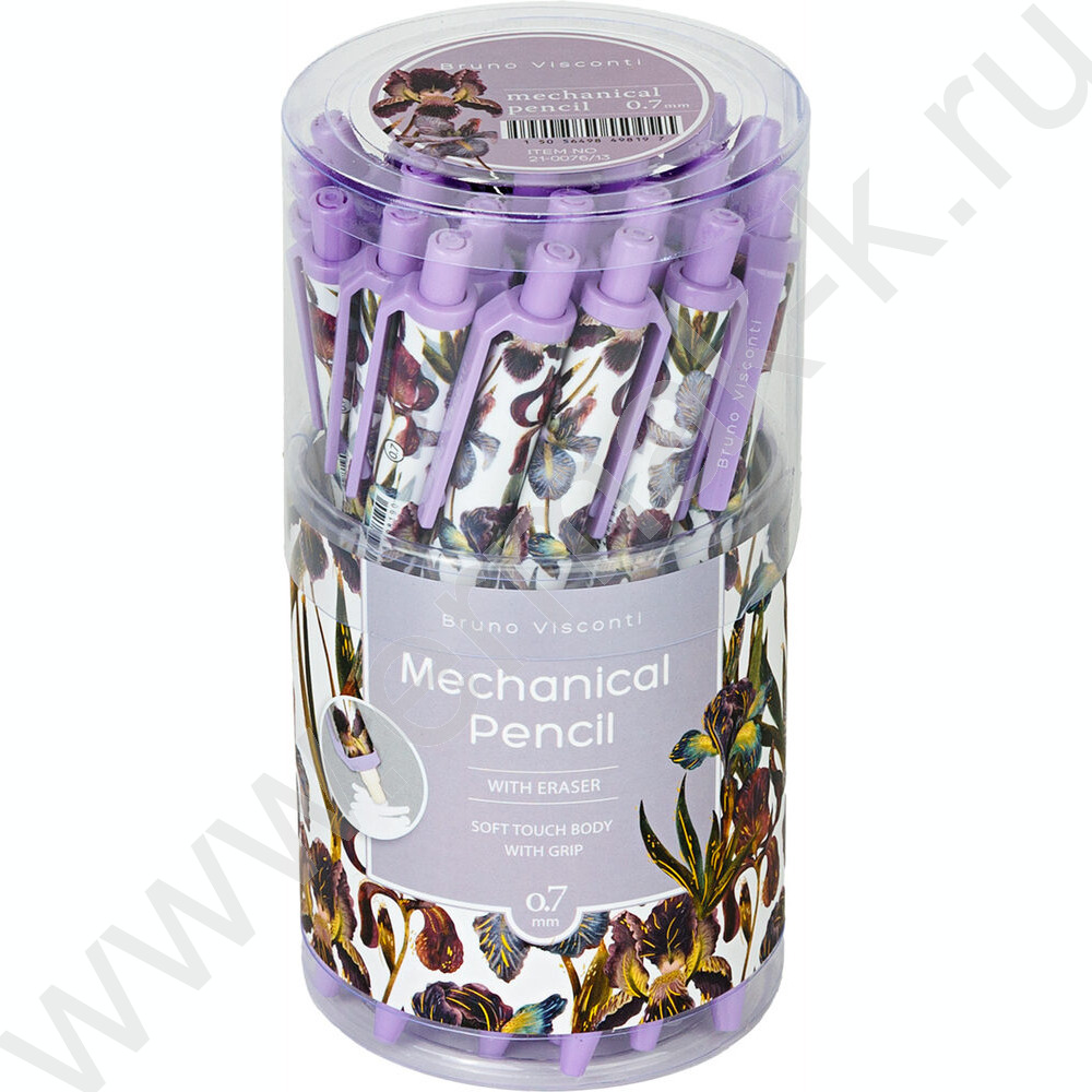 Карандаш механический 0,7мм с ластиком Flora.Ирисы NEW