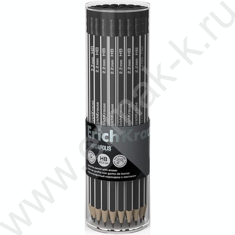 Карандаш ч/гр с ластиком HB MEGAPOLIS /трехгранный /туба