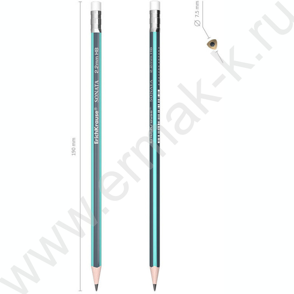 Карандаш ч/гр с ластиком HB Sonata /трехгранный /туба 42шт