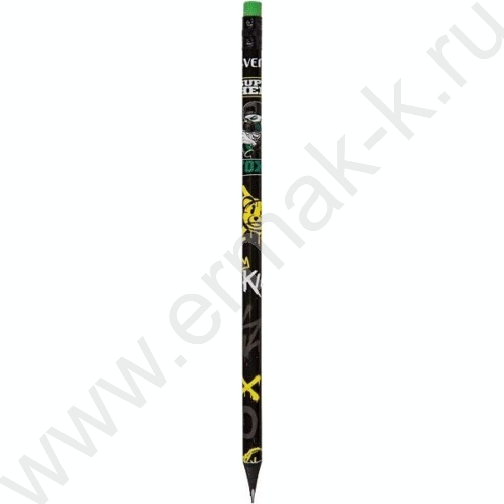 Карандаш ч/гр с ластиком HB "Triolino SuperHero. Toxic" 2мм, трехгранный, заточенный
