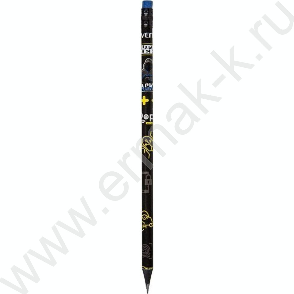 Карандаш ч/гр с ластиком HB "Triolino SuperHero. Hacker" 2мм, трехгранный, заточенный