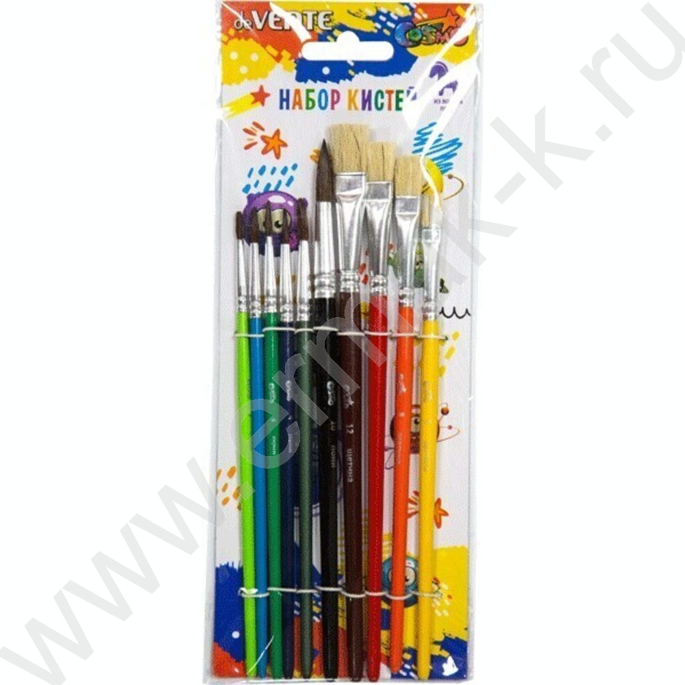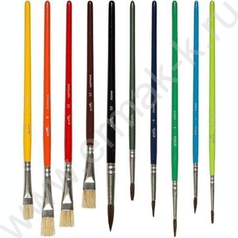 Кисть набор 10шт /пони круг. № 1, 2, 3, 4, 6, 10, щетина плоские № 6, 8, 10, 12/ "Cosmo"