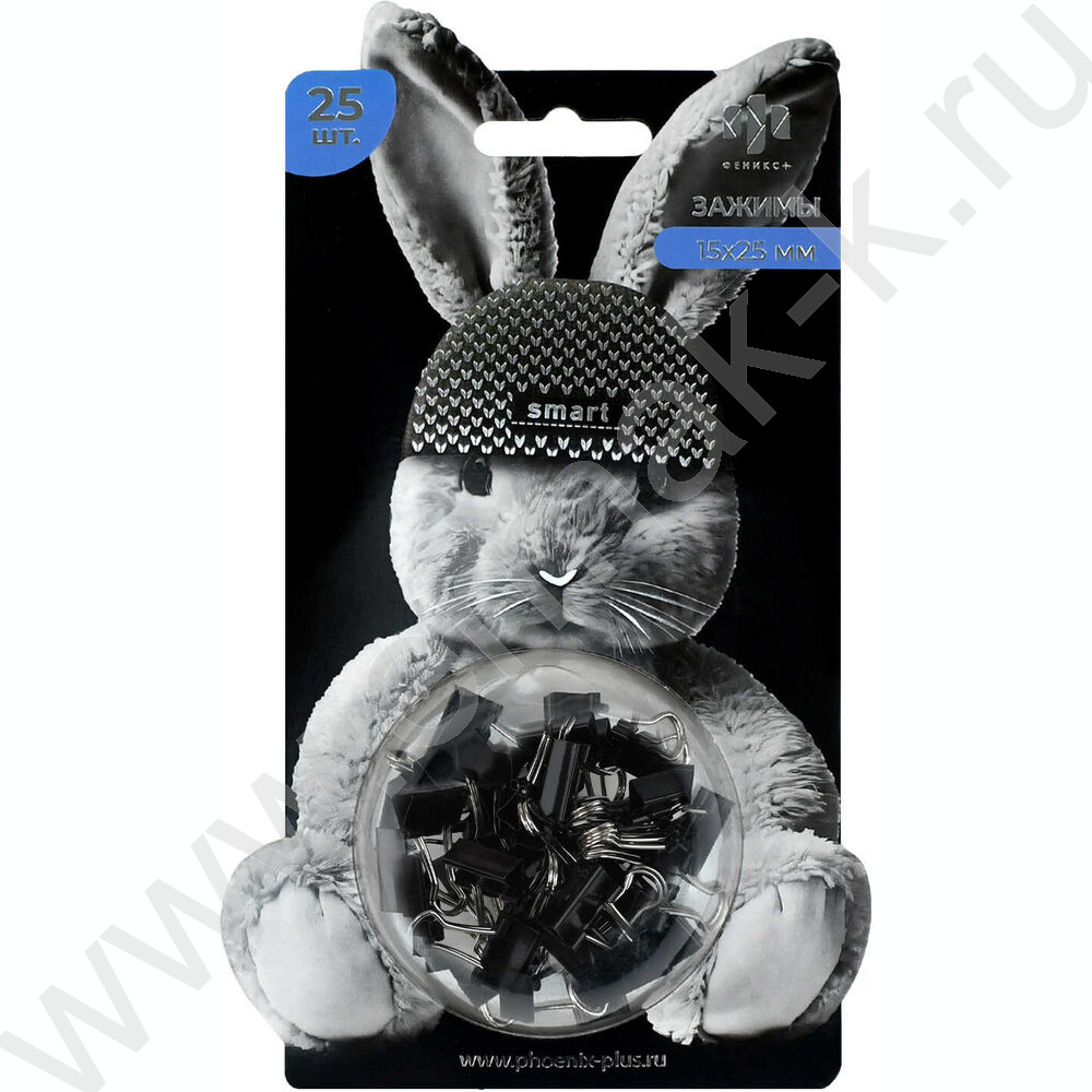 Зажим набор - 25шт "Зайка в шапочке" чёрный/ ПВХ-блистер на подложке