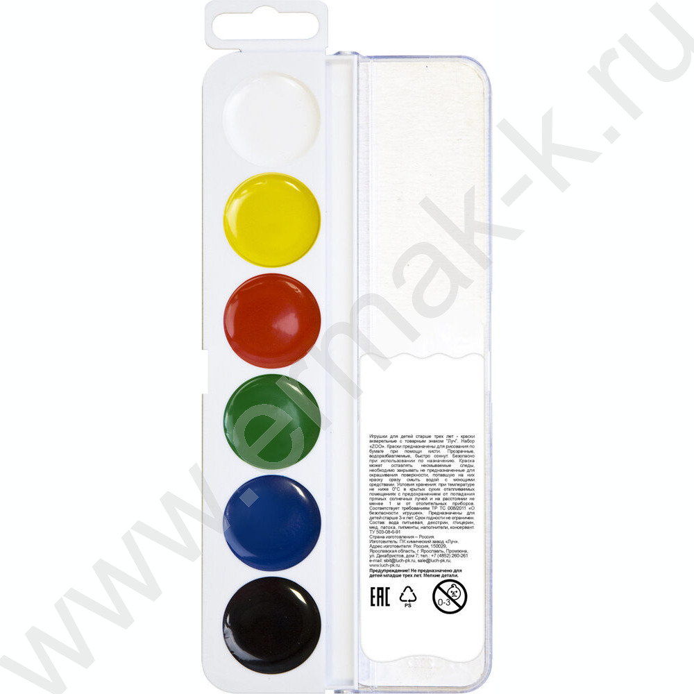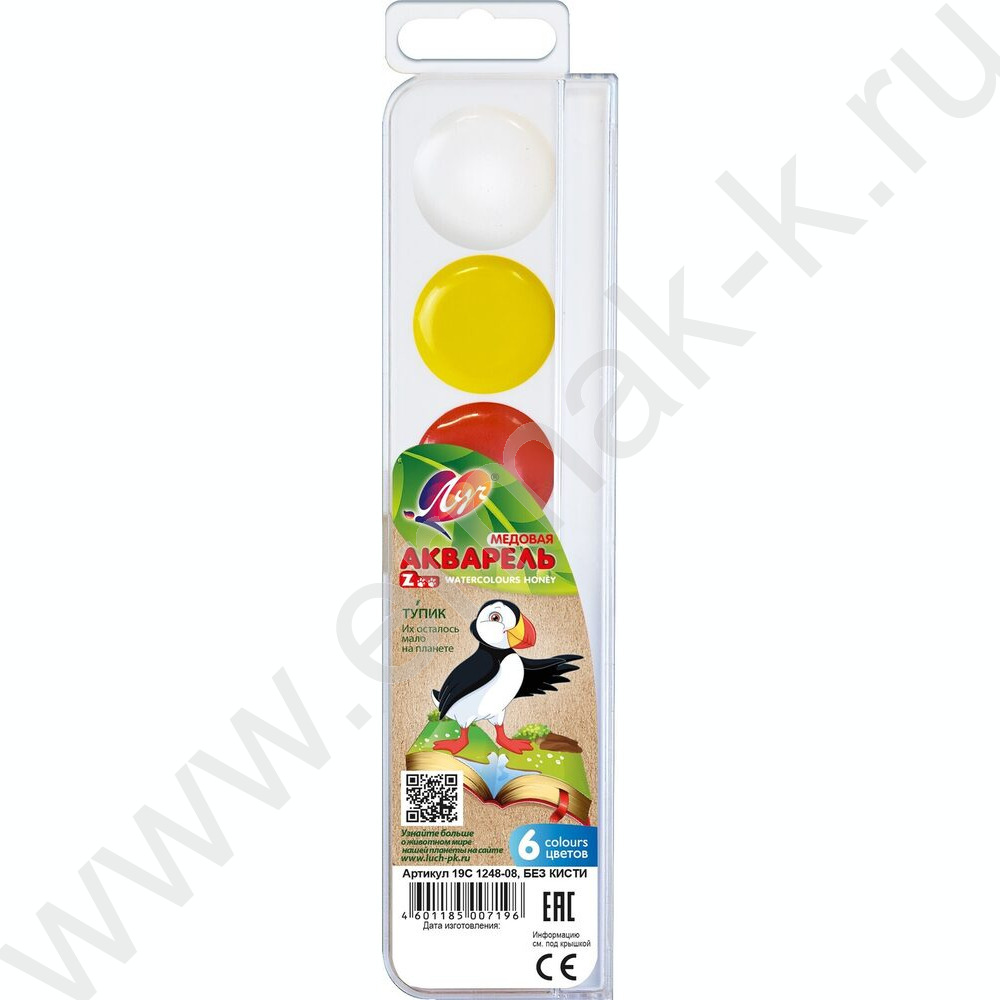 Акварель медовая 6цв ZOO б/кисточки п/у