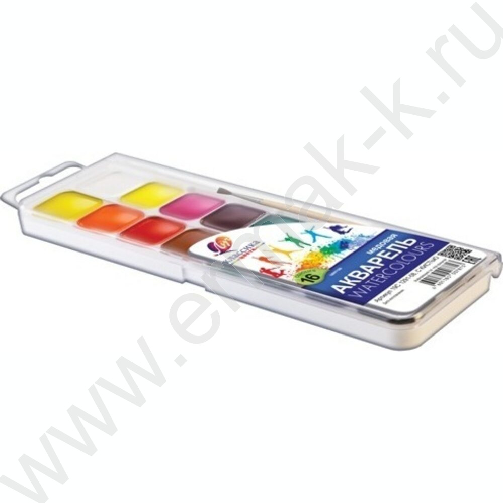 Акварель медовая 16цв Классика с кисточкой п/у