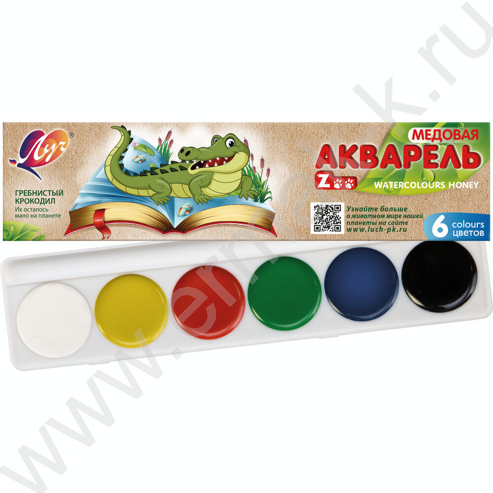 Акварель медовая 6цв ZOO б/кисточки к/кор