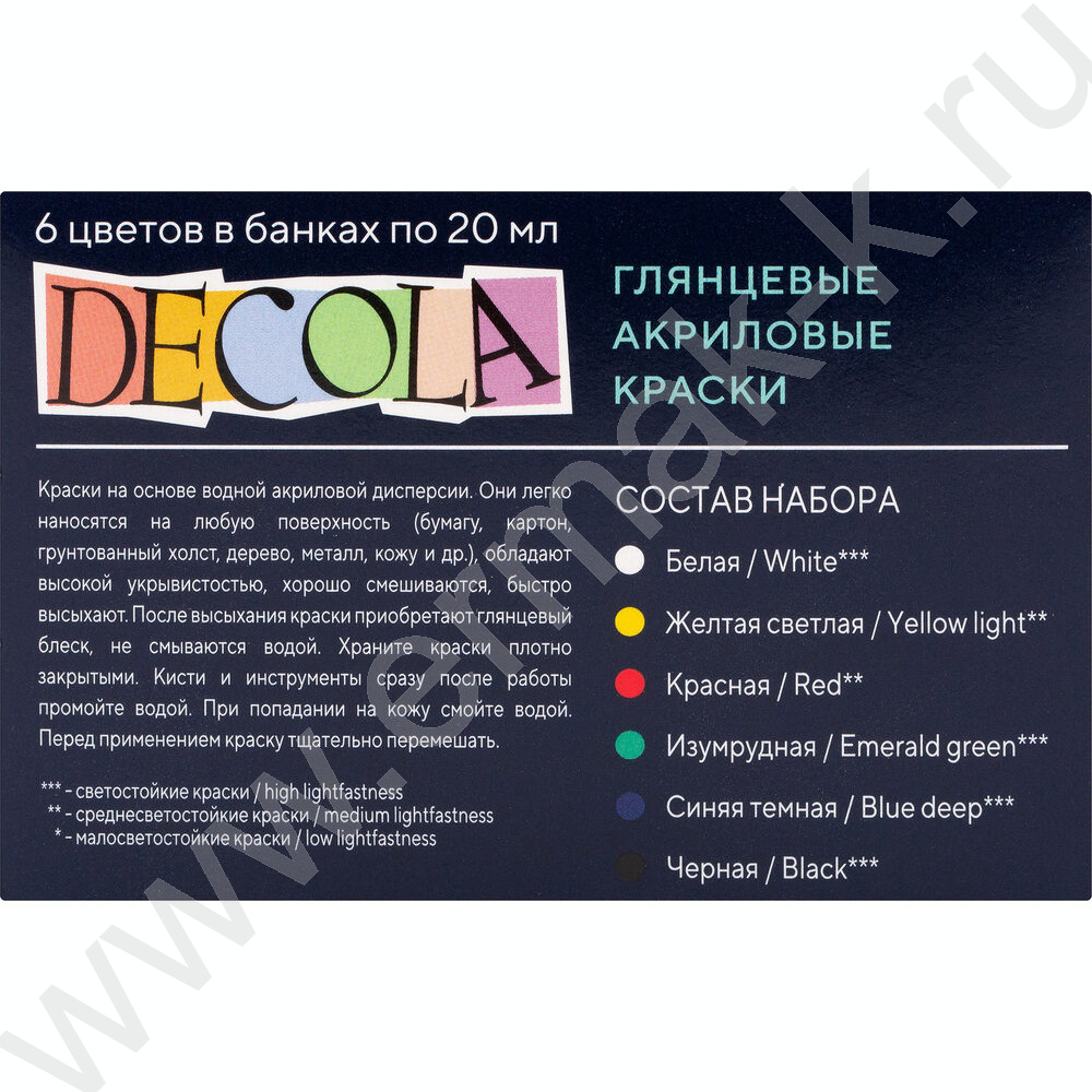 Краски акриловые 6цв 20мл Декола глянцевые