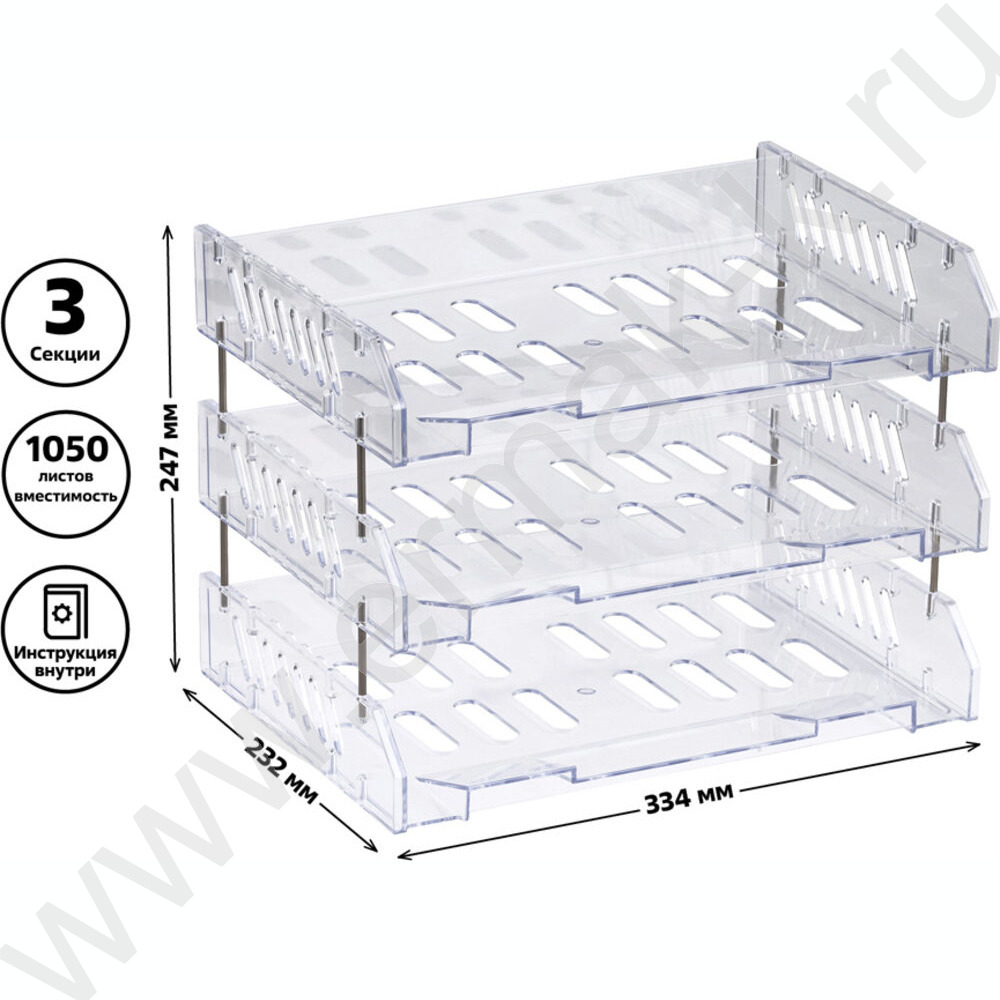 Лоток горизонтальный сетчатый "Сити" прозрачный /широкая загрузка /уп.3шт на мет.стержнях