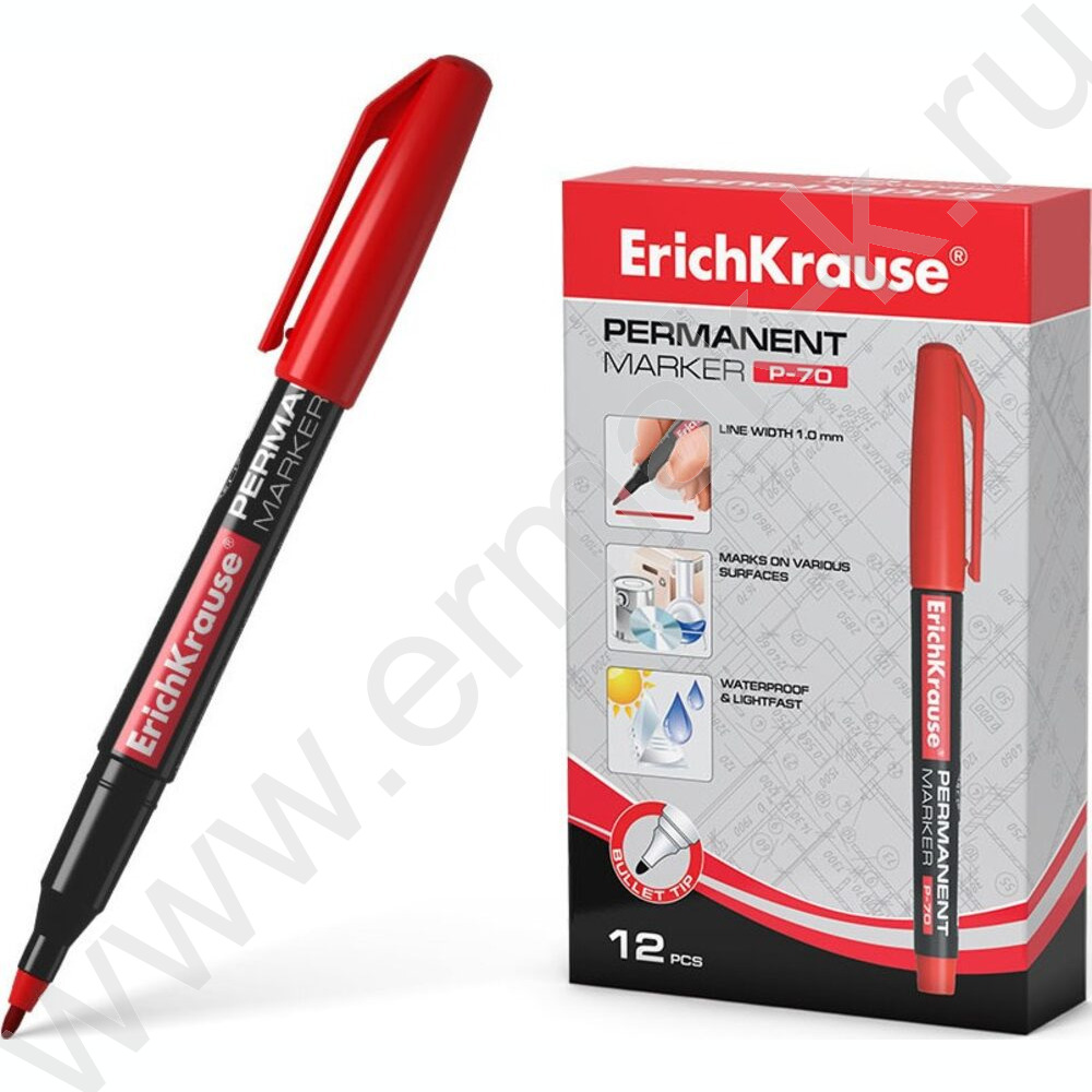 Маркер перм. CD,DVD, OHP пленка /красный/ 1мм круг P-70