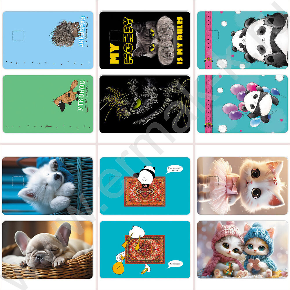Наклейка на банковскую и транспортную карты с высечкой под чип "Ассорти" 48 дизайнов в блоке