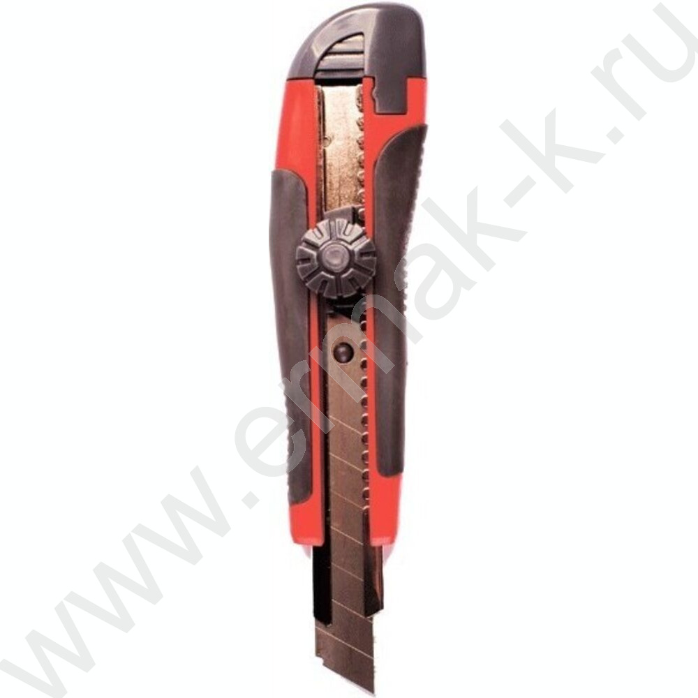 Нож канцелярский 18мм черный с красным метал.направляющие,ручная блокировка лезвия,каучуковые вс
