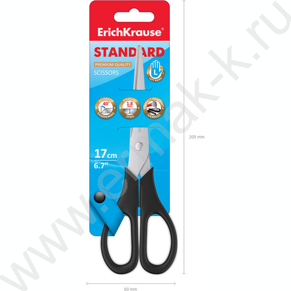 Ножницы для левшей 17см Standard чёрные /европодвес