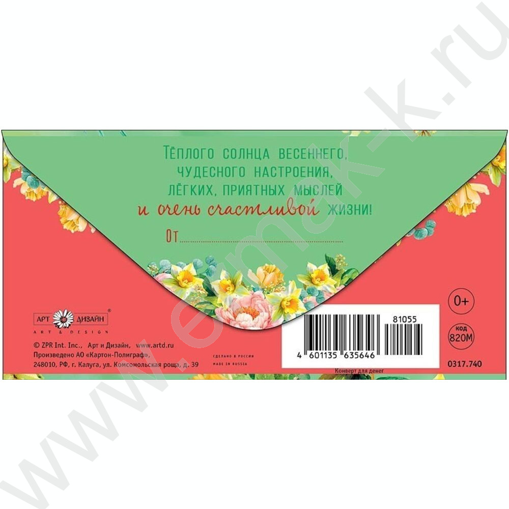 Конверт д/денег 167*83мм "В День 8 Марта"