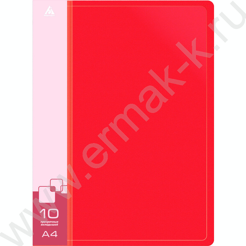 Папка 10 файлов красная 0,6мм карман торцевой с бумажной вставкой