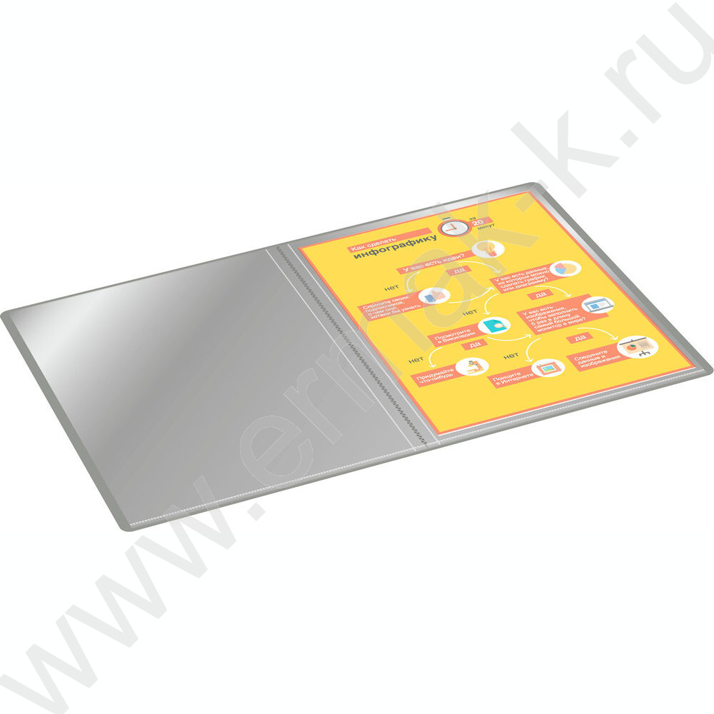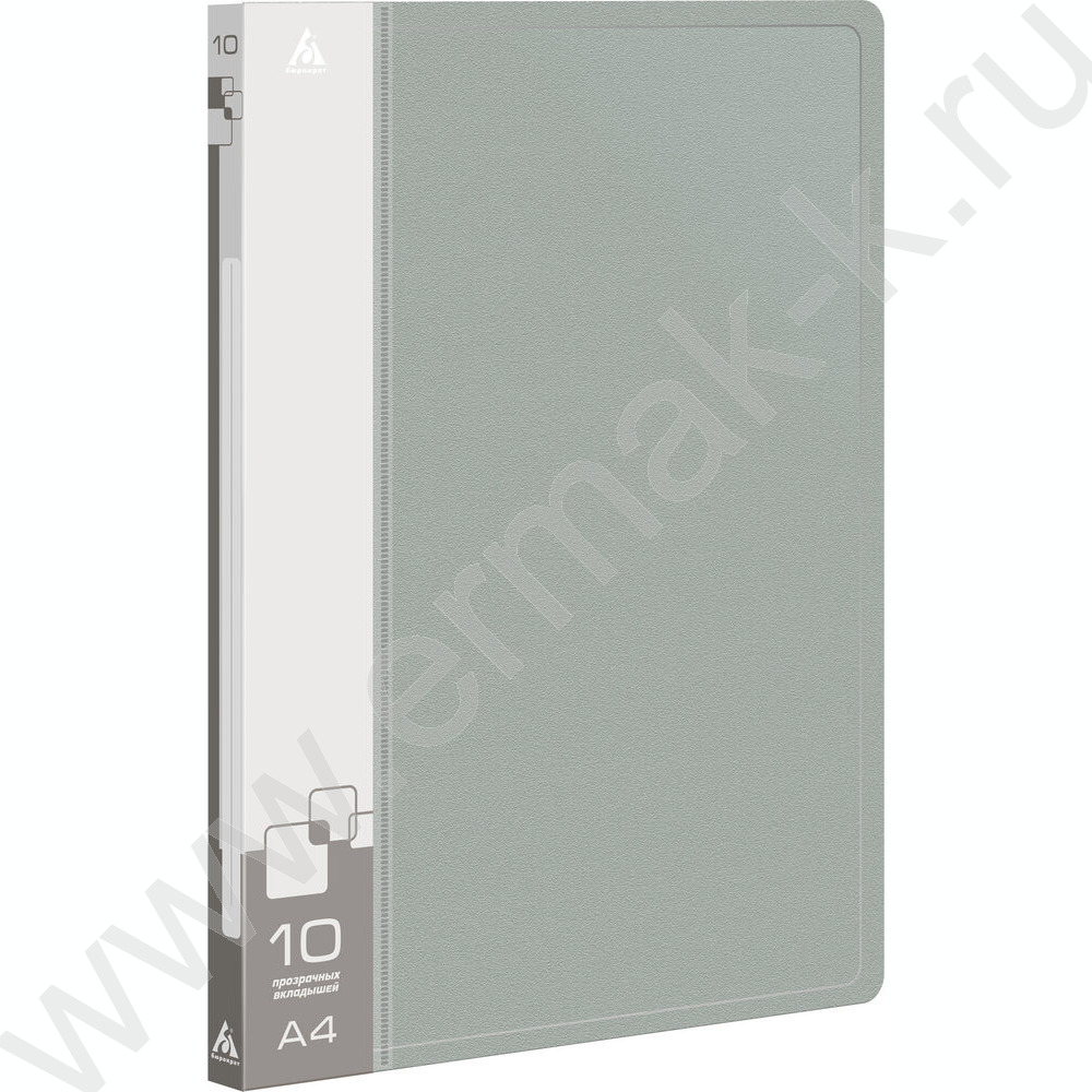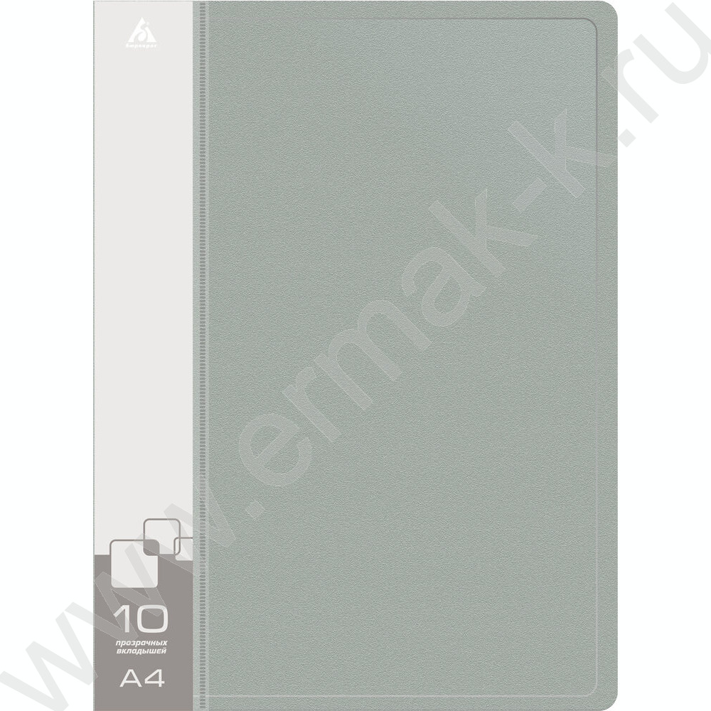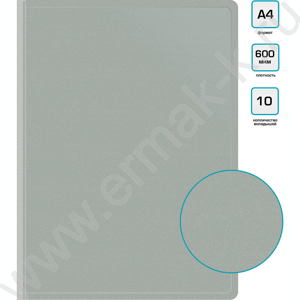 Папка 10 файлов серая 0,6мм карман торцевой с бумажной вставкой