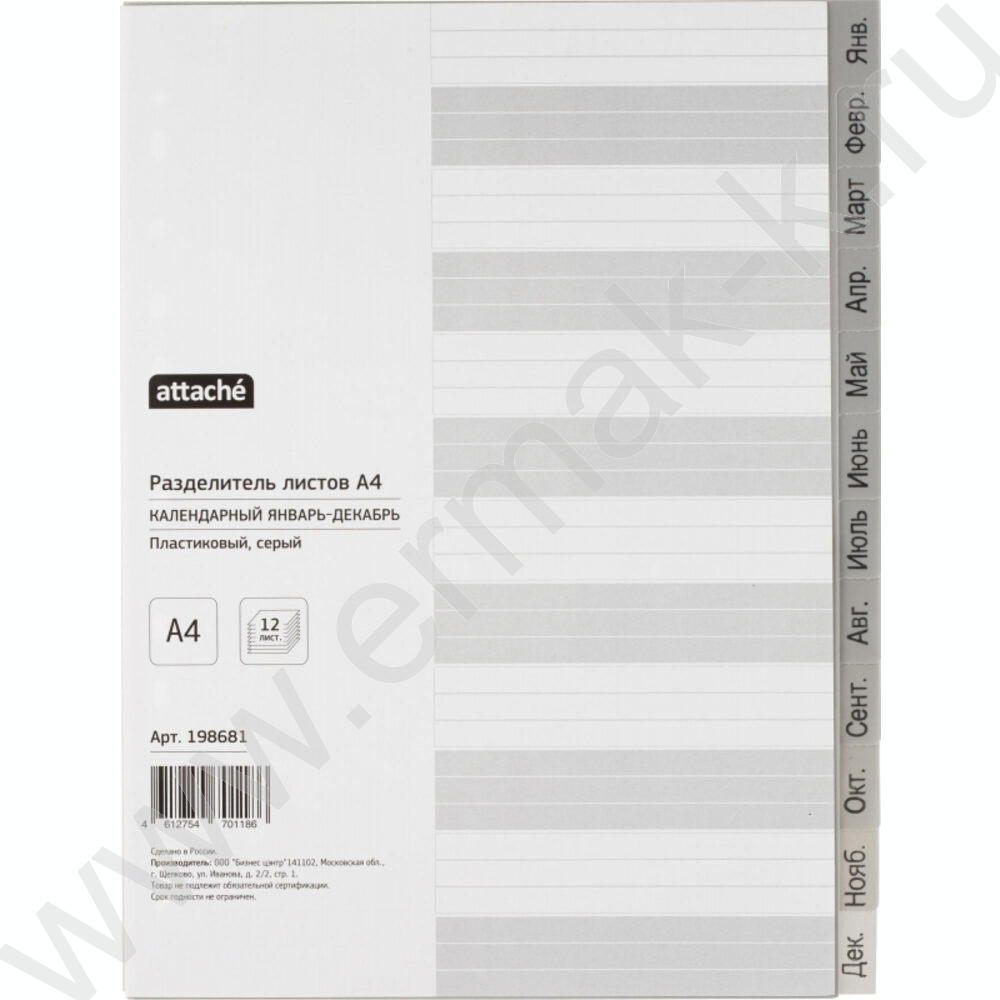 Разделитель листов пластик А4 по месяцам Январь-Декабрь 12разделов