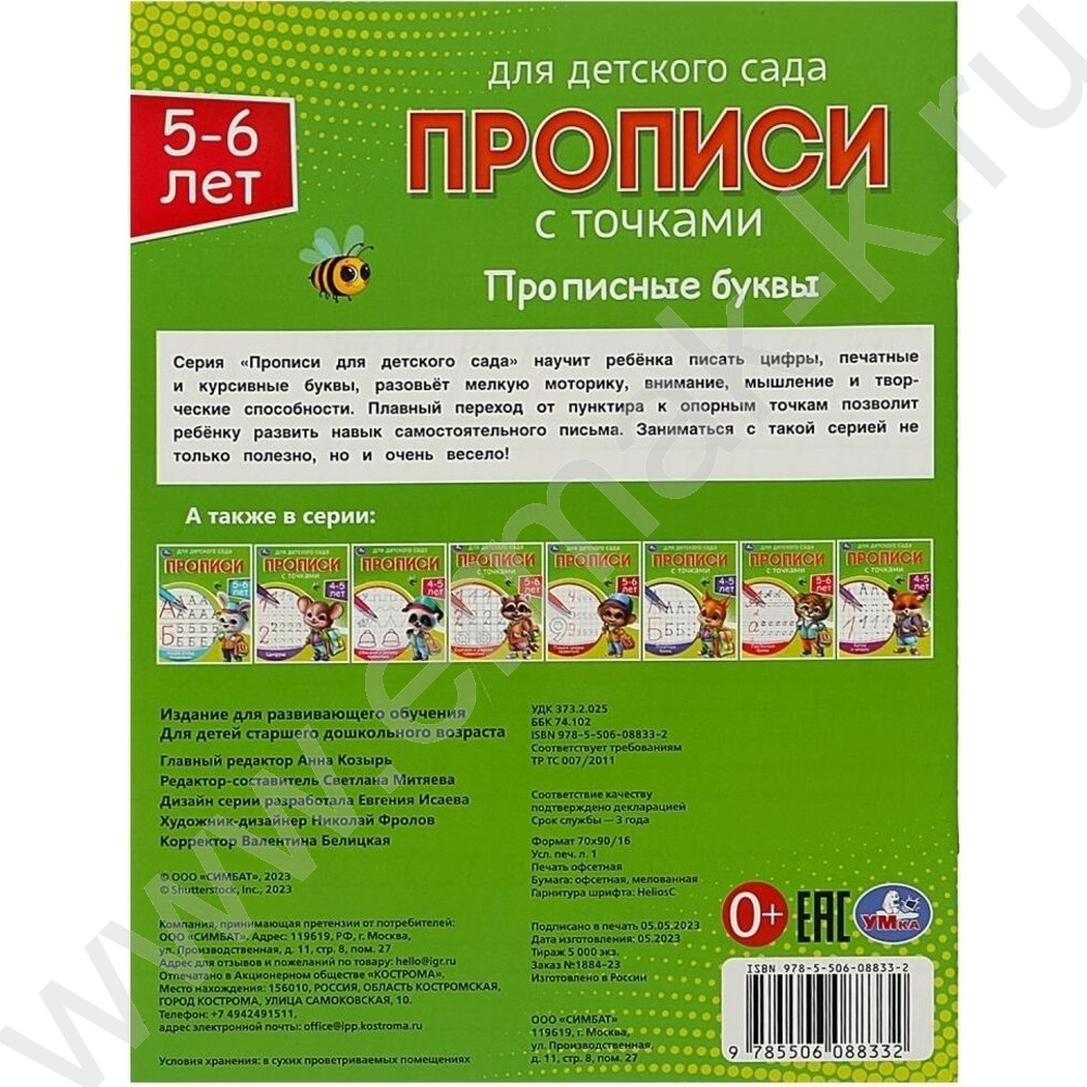 Пропись А5 Прописи для детского сада.Прописные буквы.5-6 лет