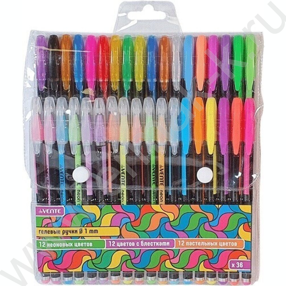 Ручка гелевая /набор 36цв/ 1мм "Neon Black" /черный корпус с цветными полосами / блистер