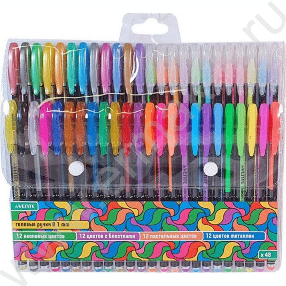 Ручка гелевая /набор 48цв/ 1мм "Neon Black" /черный корпус с цветными полосами / блистер