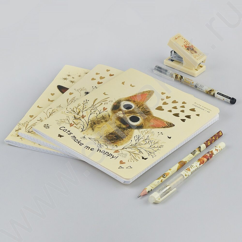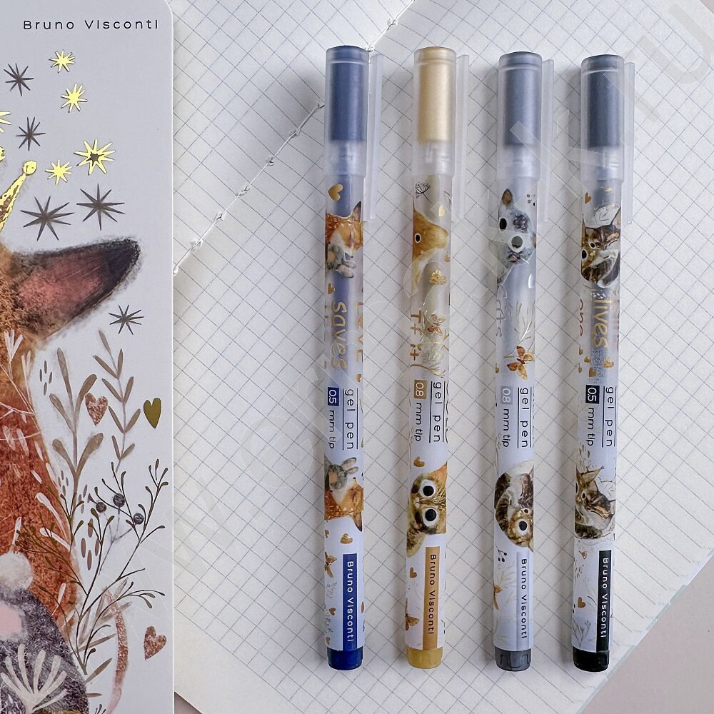 Ручка гелевая черная 0,5мм UniWrite Котики счастья