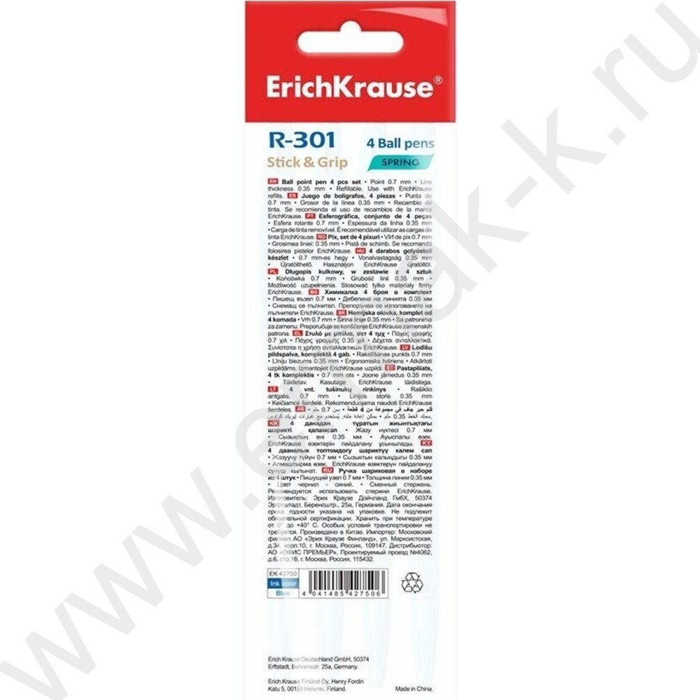 Ручка шар /набор 4шт/ R-301 Stick&Grip Spring 0,7мм, синяя
