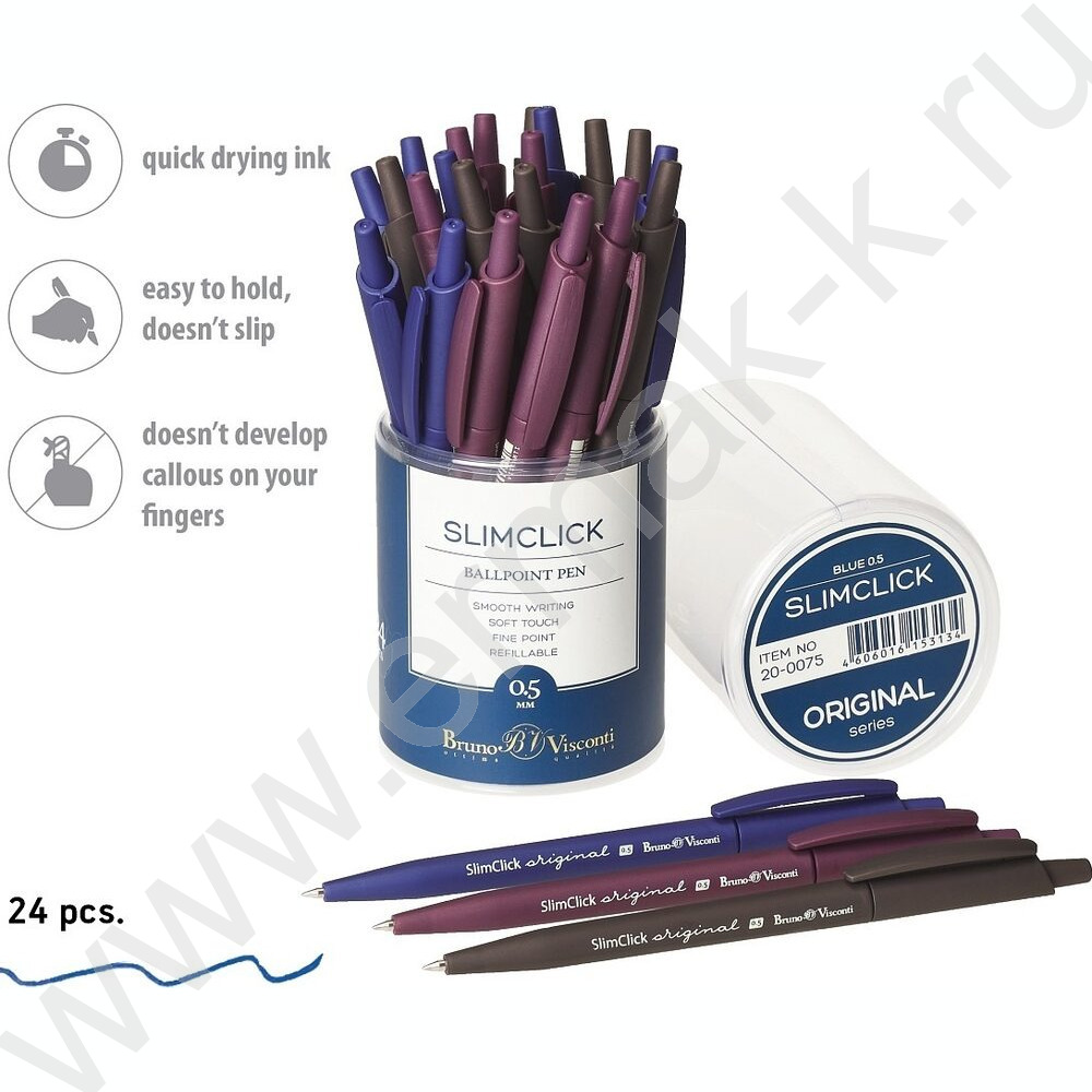 Ручка шар авт SlimClick.Original синяя 0,5мм /антискольз.корпус/3цв.корпуса