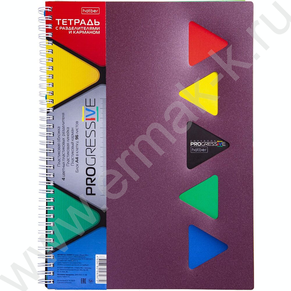 Тетрадь 96л А4 клетка/спираль с фигурной высечкой/перфорация на отрыв/пл.обл./4цв.разделителя с