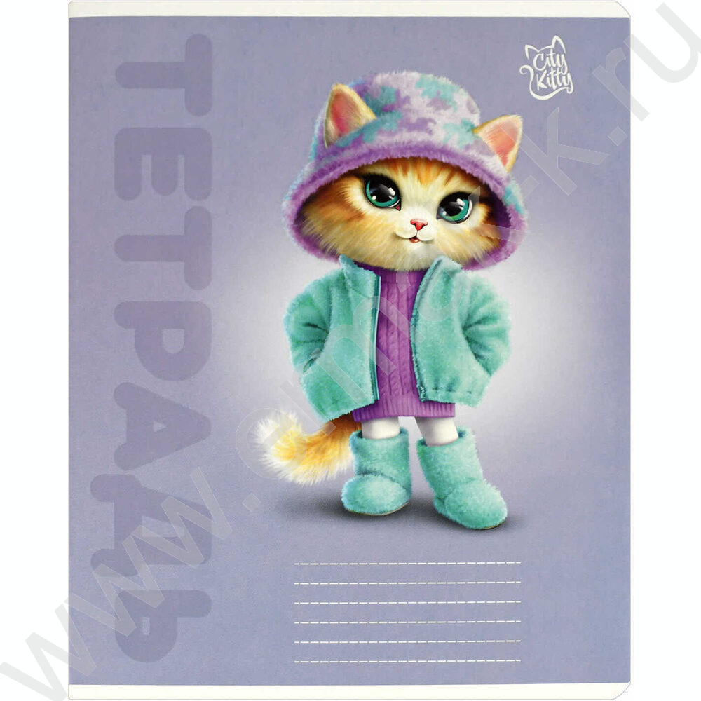 Тетрадь 12л линейка "Городские кошечки" /выборочный УФ-лак/ ассорти